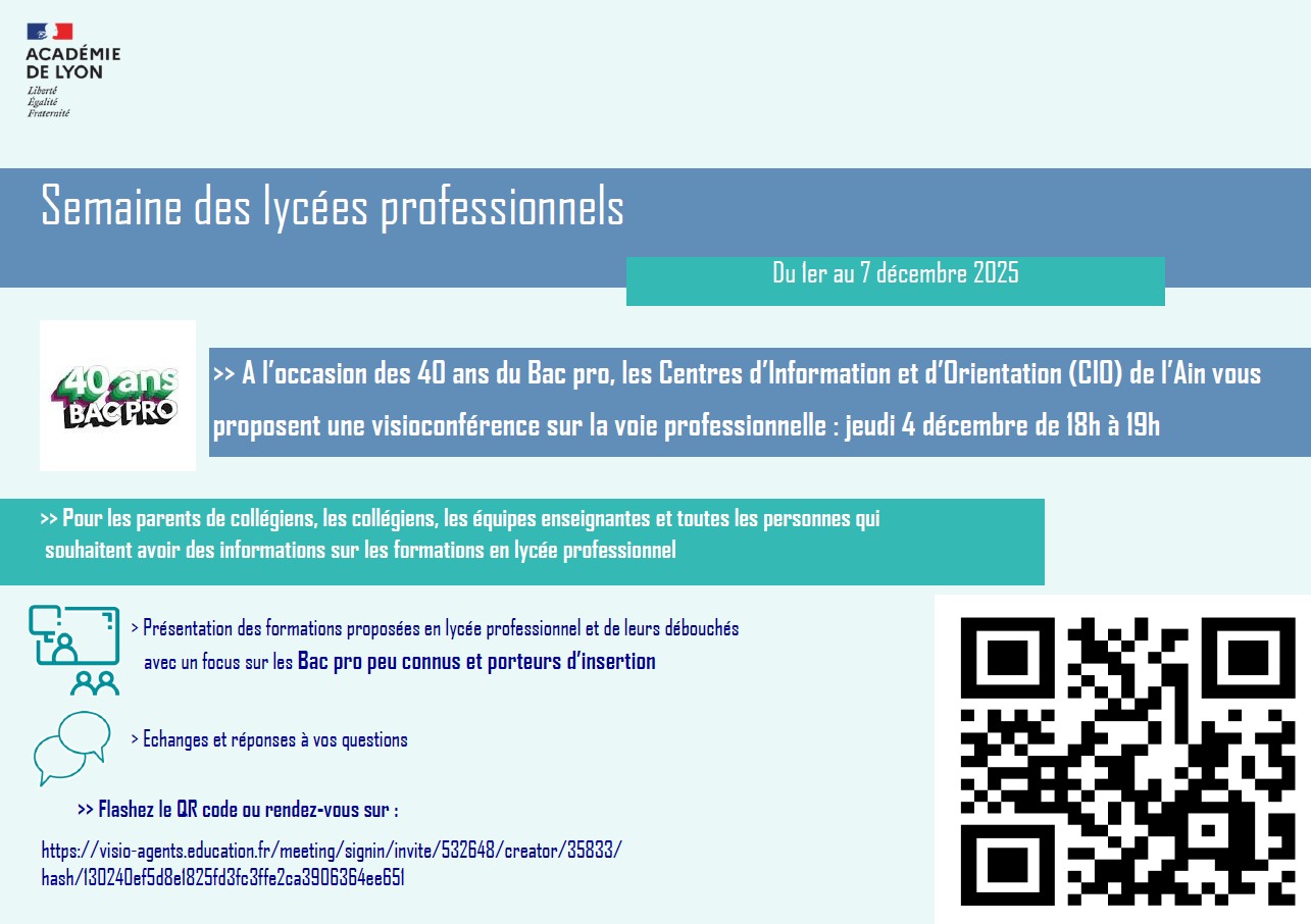 Visioconférence par les CIO de l'Ain : la voie professionnelle - Jeudi 4 décembre à 18h